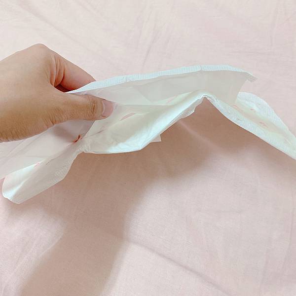 美麗人生的衛生棉在底部背膠的部分,是採兩段式分段,中間無背膠人體工學設計,讓在經期來時坐姿怎麼改變或盤腿後,棉棉也不會扭曲沾黏,好適合像我這種喜歡扭來扭去一直變換動作的人